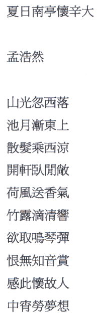 Der Sommer beginnt nach altem Kalender mit dem „Schaukelfest“ (Sonnwendfeier) am 5. Tag des 5. Monats, für uns also Mitte Juni. Längere Regenperioden gehen in immer wärmeres, schließlich heißes Klima über. In die stickige Luft feuchter Böden mischt sich Staub. Vielleicht ist auch das Ursache für die soviel geringere Anzahl von „Sommergedichten“. So finden sich unter ihnen häufig solche, in denen die drückende Schwüle dieser oder jener Seelenlast zuschreibbar erscheint. Auch in den Rhythmen klingt oft ein zäherer, hingehaltener Ton nach, der mit dem Leiden so eng verwandt ist, daß selbst leidenschaftlichheftiges Empfinden sich ihm angleichen muß.